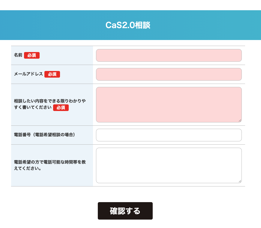 上記のページに移動しますので必要箇所に入力いただき、確認するをクリックする。