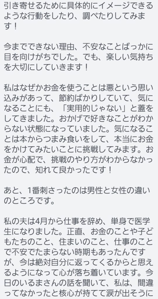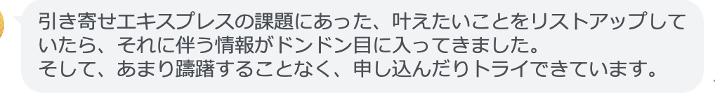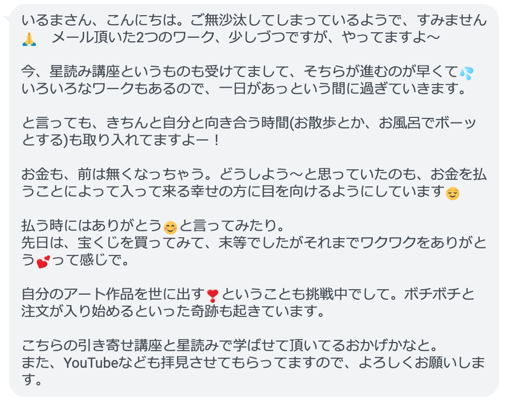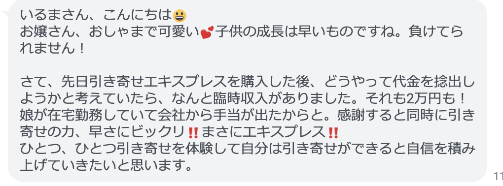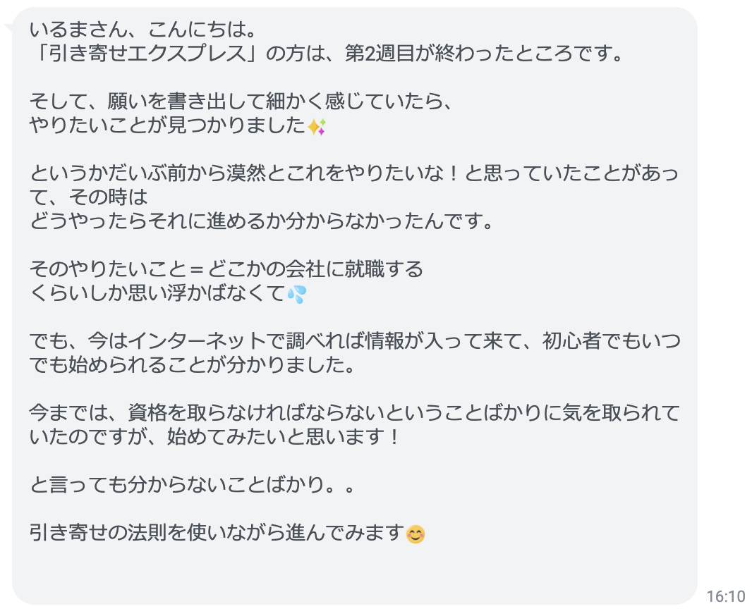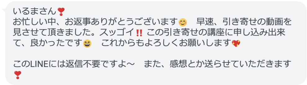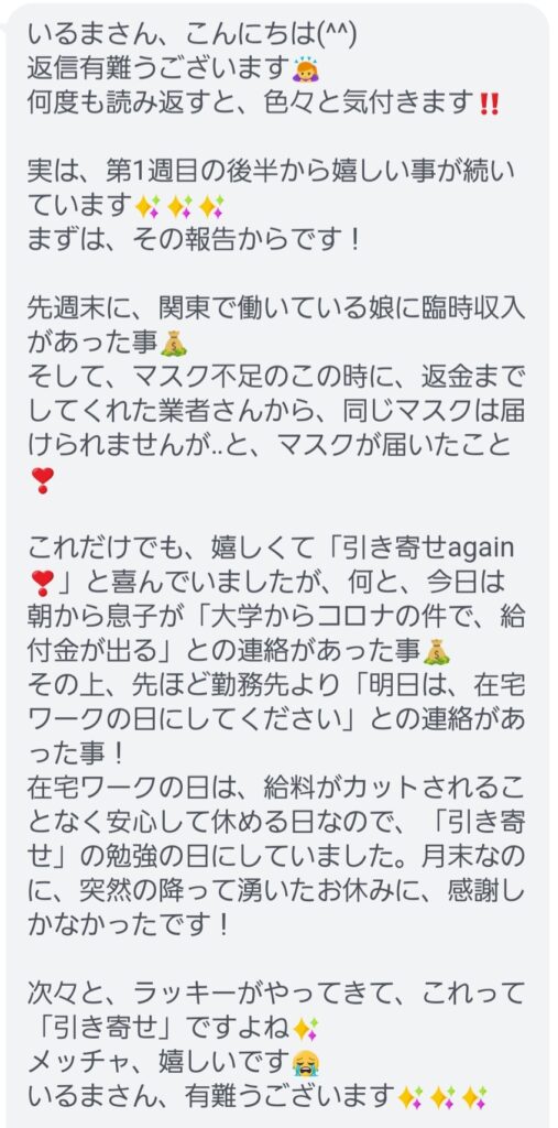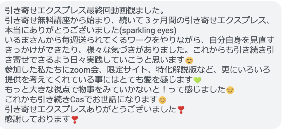 引き寄せエクスプレスを学んだ方からいただいたご感想の一部です 目次体験談動画 まきこさんと引き寄せ対談 カミちゃんと引き寄せ対談 LINEでのご報告 2020年にリリースして依頼、多くの方からのご感想をいただいております。 実践者の声 URLをコピーしました!