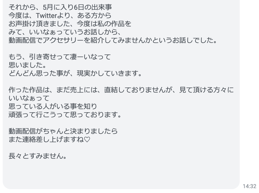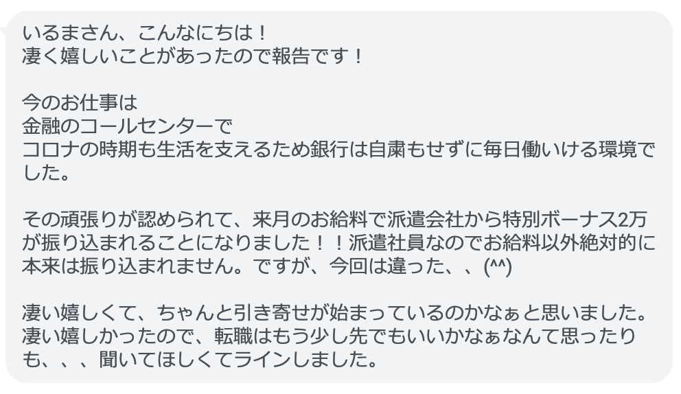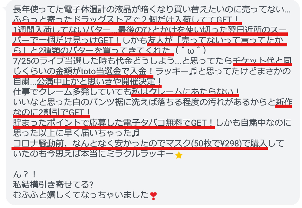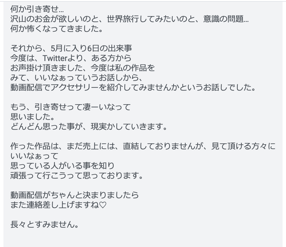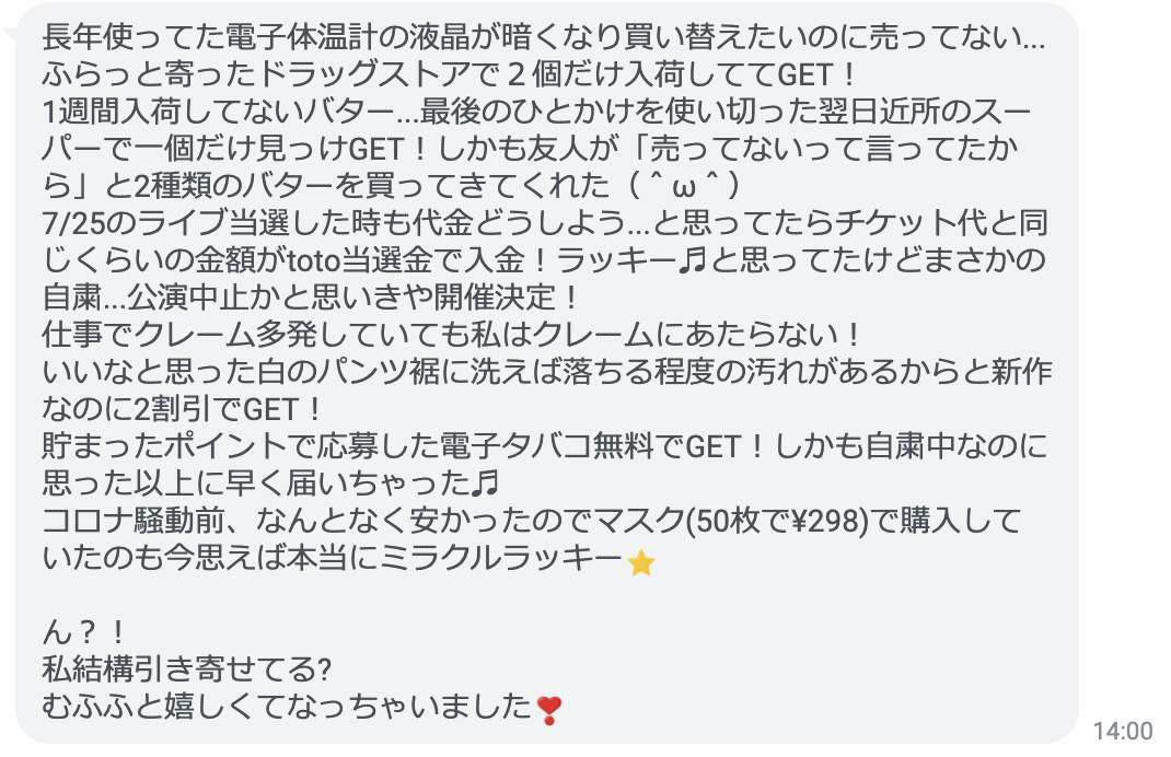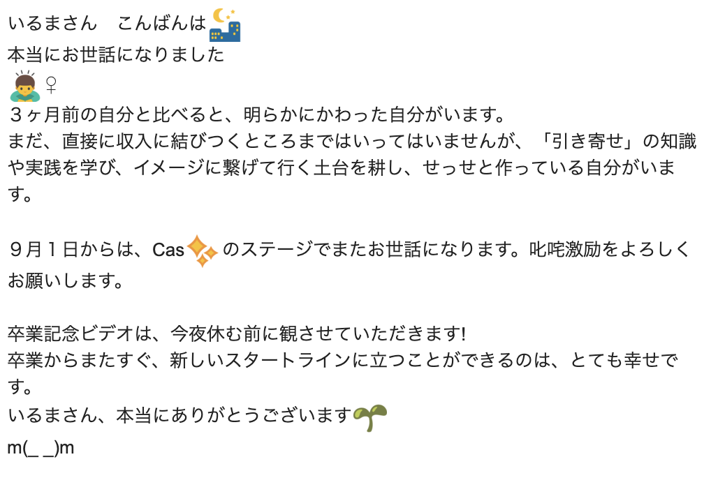 引き寄せエクスプレスを学んだ方からいただいたご感想の一部です 目次体験談動画 まきこさんと引き寄せ対談 カミちゃんと引き寄せ対談 LINEでのご報告 2020年にリリースして依頼、多くの方からのご感想をいただいております。 実践者の声 URLをコピーしました!